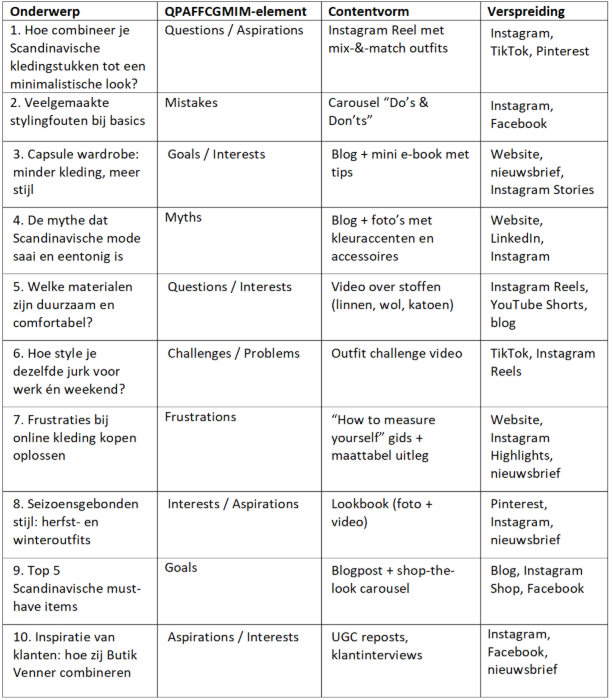 Door de inzichten uit de presentatie van Tom Tülkens te koppelen aan onze analyse van Butik Venner hebben we een concreet plan opgesteld dat zowel inhoudelijk als technisch aansluit op de merkidentiteit van de boetiek. De content roadmap werkt als groeigids om de webshop stap voor stap te verbeteren en de vindbaarheid te verhogen.
